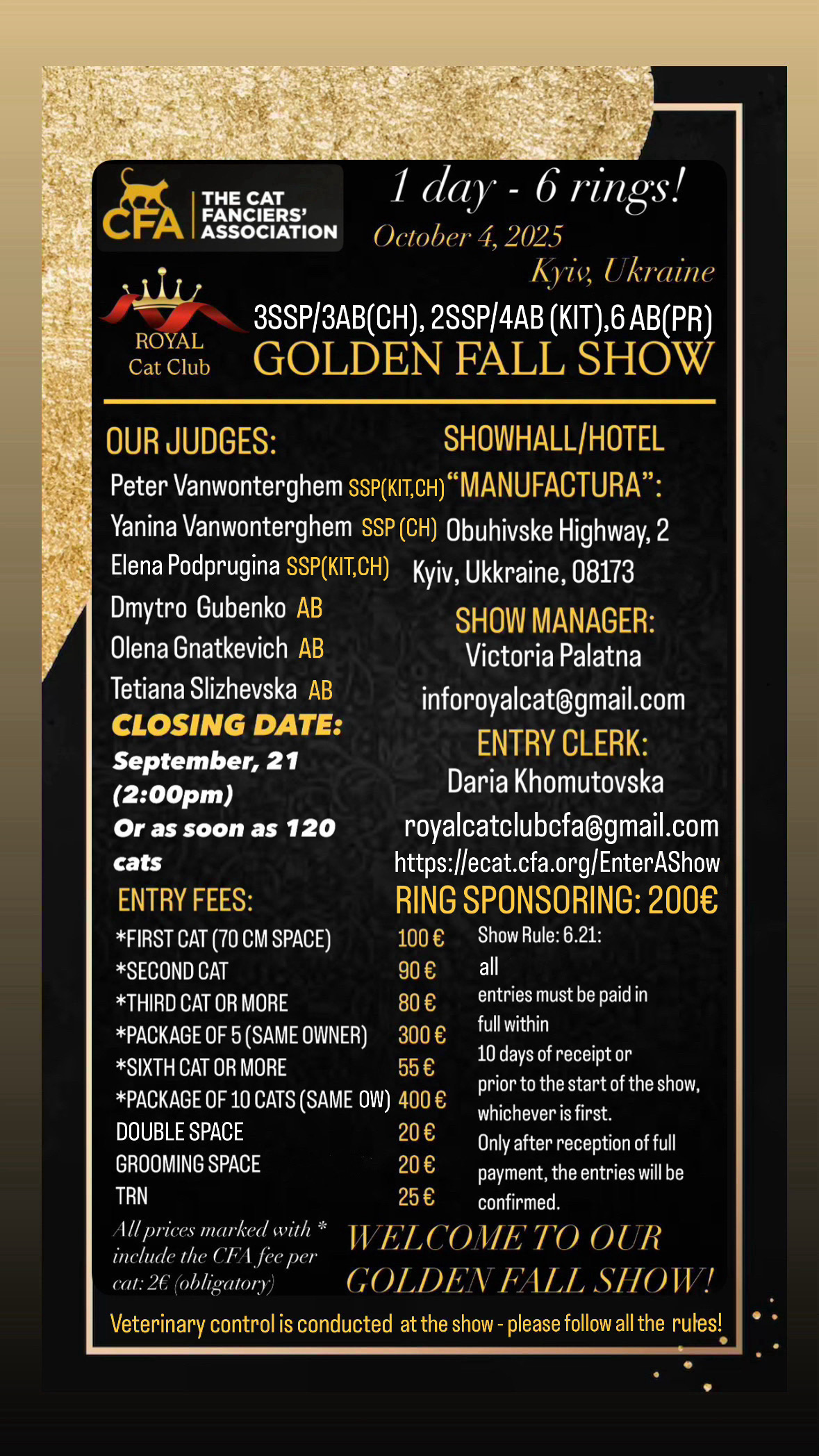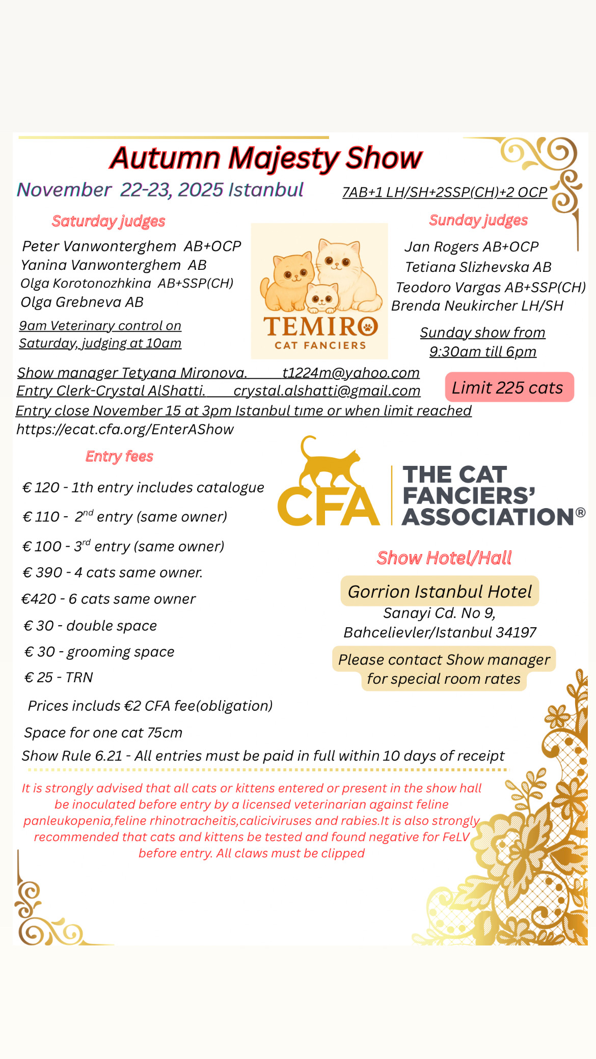 ** In order to list a show as “planned” on the calendar, Central Office must receive a copy of at least one signed contract from a judge